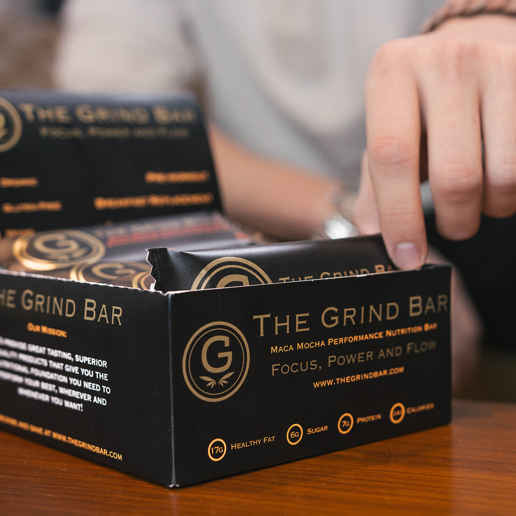 The Grind Bar is the bar you've always wanted! High fat and low natural source sugar to fuel your body, with maca, coffee, chocolate, and CBD to keep your mind sharp and performing it's best!